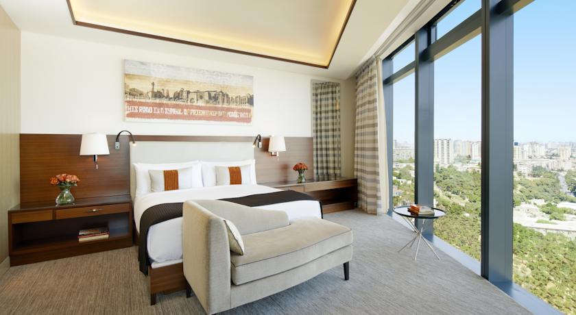 Символом современного, стремительно развивающегося Баку являются Башни Пламени. В одной из них находится отель, претендующий на гордое звание лучшего в Азербайджане – это Fairmont Baku. Современное здание возвышается над городом, открывая гостям лучшие виды на Каспийское море и исторический центр. Его главный холл украшают колонны и массивная хрустальная люстра, переливающаяся в лучах света. Просторные номера с панорамными окнами созданы для того, чтобы наслаждаться отдыхом. Самым взыскательным гостям подойдут номера категории Gold с эксклюзивным обслуживанием и множеством приятных бонусов. В ресторане Le Bistro подают великолепные блюда французской кухни. А когда ночь опускается на город, насладиться ритмичными звуками джаза можно в Alov Jazz Bar.